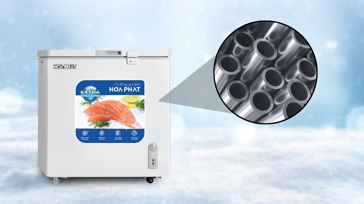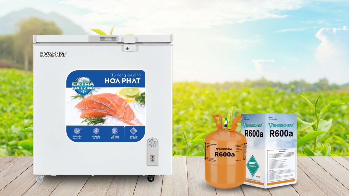 Đồng thời R600a cũng được đánh giá là dòng gas thân thiện với môi trường khi không làm phát sinh các chất gây ảnh hưởng đến tầng Ozon. Vậy nên người dùng có thể an tâm khi sử dụng chiếc tủ đông Hòa Phát này.