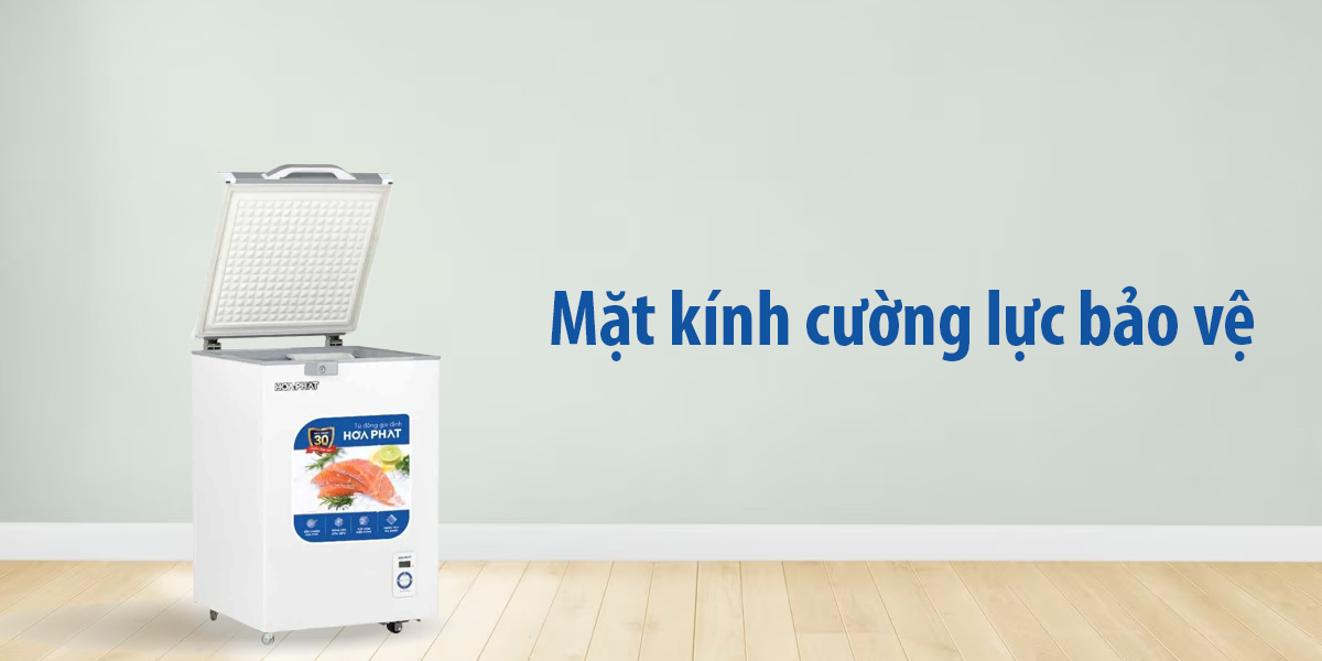 Tủ đông Hòa Phát được trang bị mặt kính cường lực bảo vệ, giúp bảo vệ nội dung bên trong tủ một cách an toàn và chắc chắn. Mặt kính cường lực có độ bền cao, khả năng chịu va đập và chịu lực tốt, giúp tránh trường hợp vỡ kính và nguy hiểm khi sử dụng. Với tính năng mặt kính cường lực bảo vệ, tủ đông trở nên đáng tin cậy và an toàn hơn, đồng thời còn tạo thêm sự sang trọng và hiện đại cho không gian sử dụng.