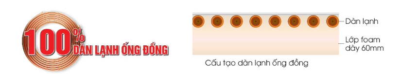 Tủ kem cấu tạo dàn lạnh làm từ ống đồng cực kỳ bền chắc.