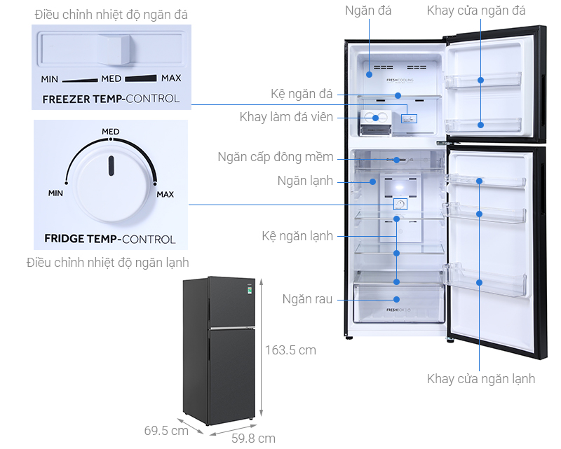 – Sở hữu dung tích lên tới 328 lít, tủ lạnh mang lại sự tiện lợi và thoải mái cho nhu cầu sử dụng thực phẩm tươi, sạch của các gia đình từ 3 đến 4 thành viên.