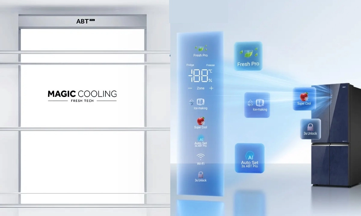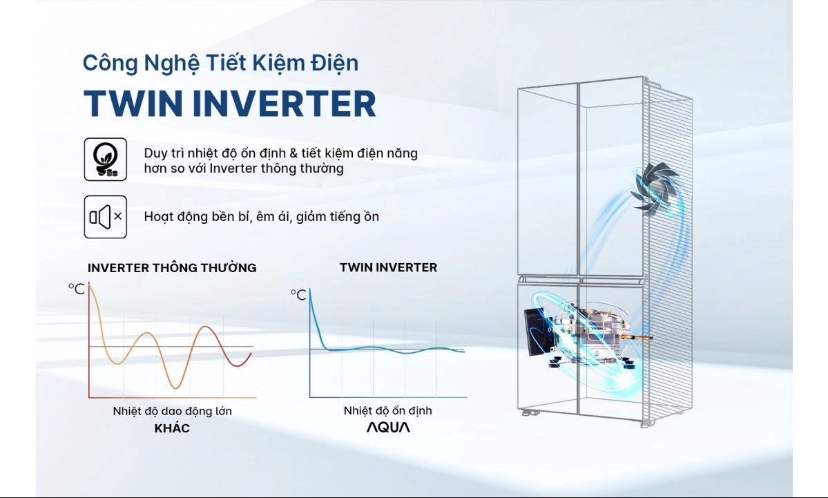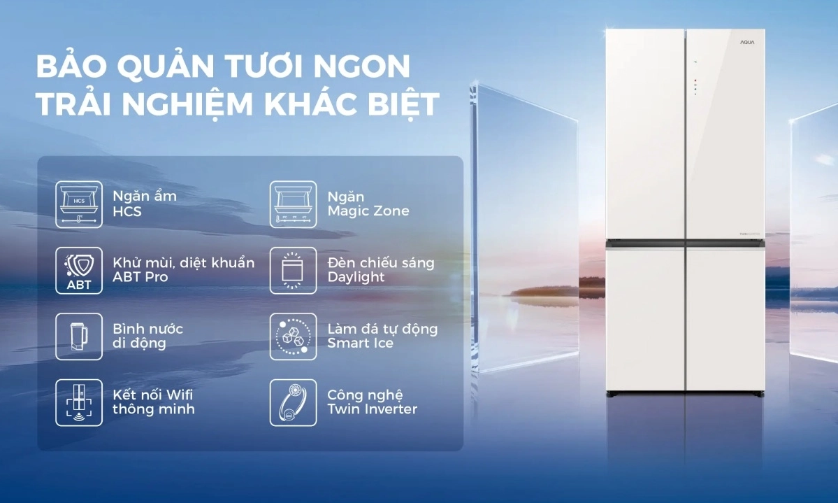 Tủ lạnh Aqua Inverterdung tích 522 lít mang lại không gian lưu trữ rộng rãi, bố cục ngăn kệ khoa học giúp sắp xếp thực phẩm gọn gàng, thuận tiện cho sinh hoạt gia đình nhiều thành viên.