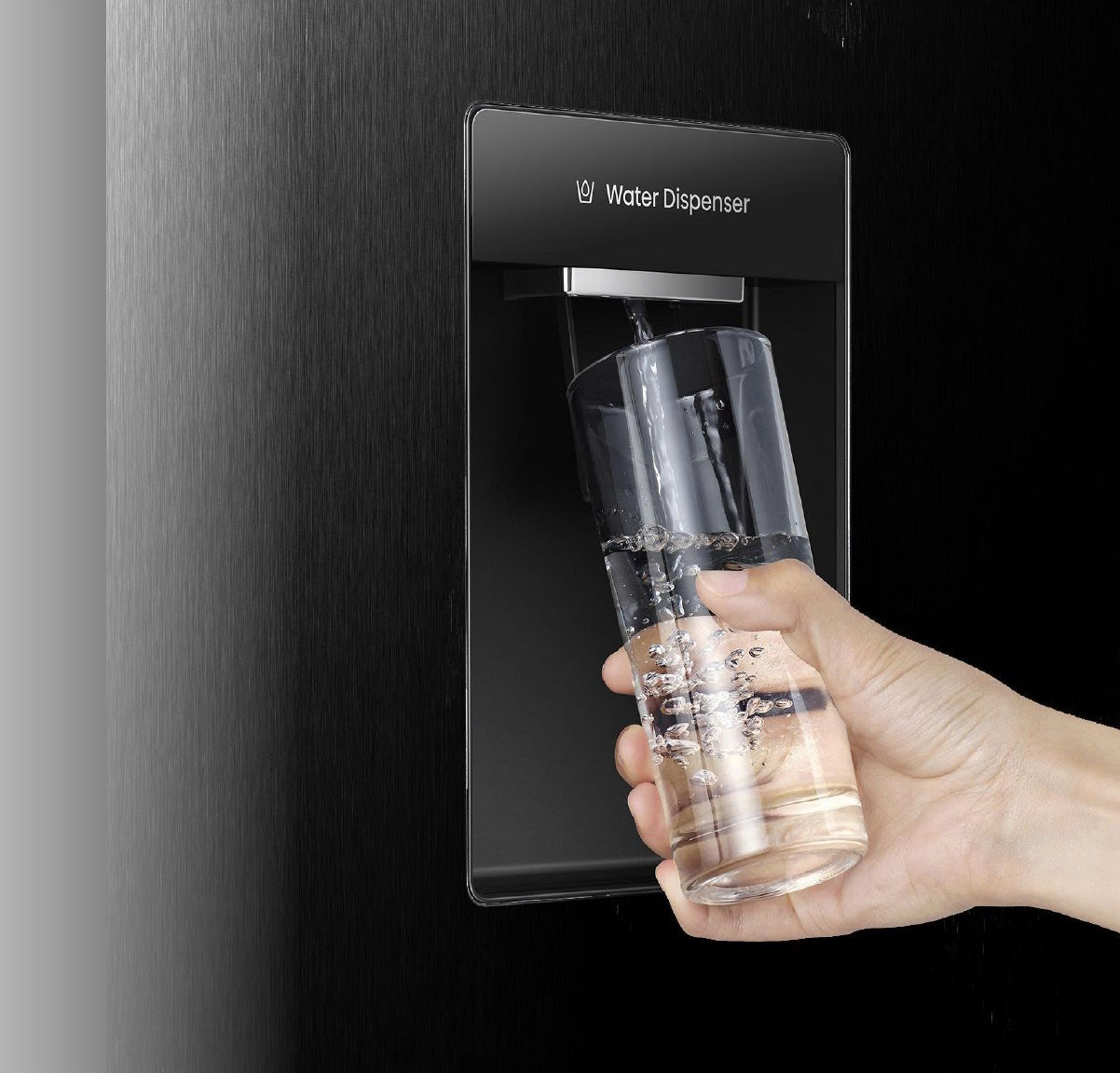 Thiết kế tích hợp ngăn lấy nước bên ngoài trên cửa phẳng giúp bạn lấy nước nhanh chóng mà không cần mở tủ. Đây không chỉ là giải pháp tiện ích hàng ngày mà còn tạo điểm nhấn thẩm mỹ cho tủ lạnh, đồng thời tiết kiệm năng lượng khi không phải mở toàn bộ cửa tủ.
