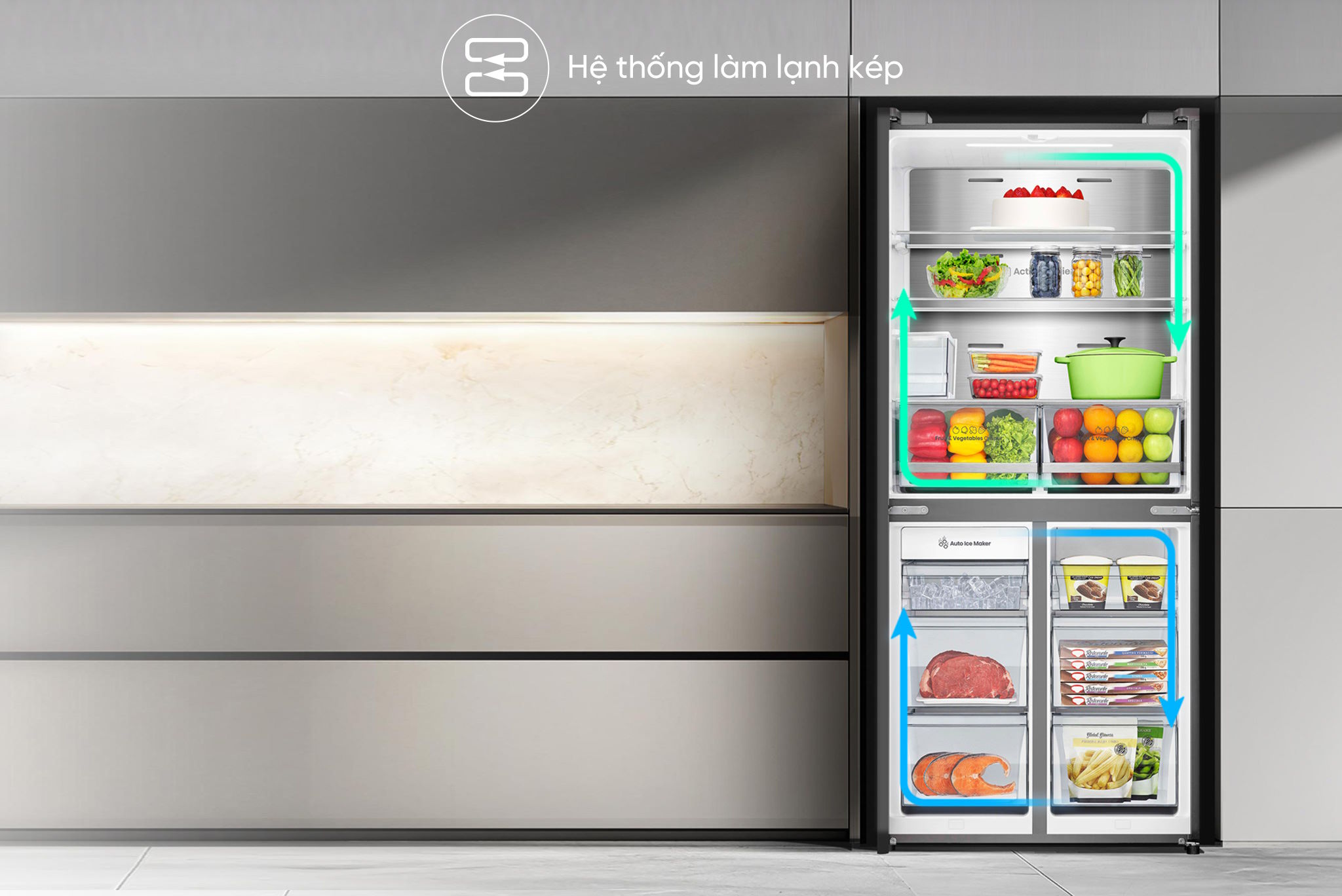 Công nghệ làm lạnh kép Dual Cooling System – Giữ thực phẩm tươi lâu gấp đôi