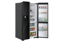 Tủ lạnh Hitachi R-MX800GVGV0 GBK là dòng tủ lạnh Side by side 3 cửa có kiểu dáng hiện đại, đẹp mắt cùng tông màu đen sang trọng làm nổi bật mọi không gia nhà bếp. Bề mặt tủ bằng kính sáng bóng, ít bám bẩn rất tiện cho việc lau chùi. Tủ được trang bị nhiều công nghệ hiện đại đảm bảo việc giữ lạnh cho thực phẩm tốt nhất; công nghệ làm lạnh bằng hệ thống quạt kép, công nghệ Inverter kết hợp cảm biến Eco tiết kiệm điện năng, bộ lọc Triple Power lọc khử mùi diệt khuẩn. Đặc biệt ở phiên bản năm 2021 này, dòng tủ lạnh có trang bị thêm ngăn chân không bảo quản. Tủ có bảng điều khiển cảm ứng và màn hình hiển thị được bố trí ngay bên ngoài cửa tủ, để bạn dễ dàng theo dõi trạng thái hoạt động cũng như điều chỉnh các thông số một cách dễ dàng. Cách bố trí này sẽ giúp tiết kiệm điện năng tiêu thụ, khi người dùng sẽ không cần phải mở tủ. Tủ lạnh Side By Side Hitachi Inverter R-MX800GVGV0 GBK có chức năng lấy nước và đá bên ngoài, lưu trữ và bảo quản thực phẩm vô cùng tiện lợi.