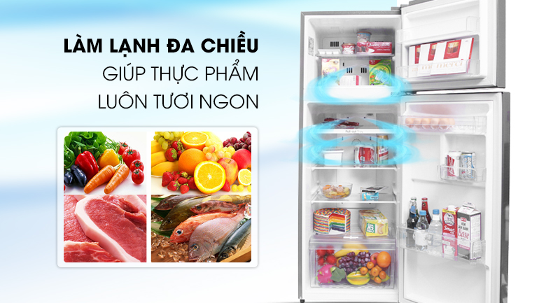 Nhờ vào hệ thống khí lạnh đa chiều, thực phẩm sẽ được bảo quản lạnh đồng đều và hiệu quả ngay cả khi thực phẩm chứa đầy bên trong tủ do hơi lạnh được tỏa ra theo nhiều hướng khác nhau.