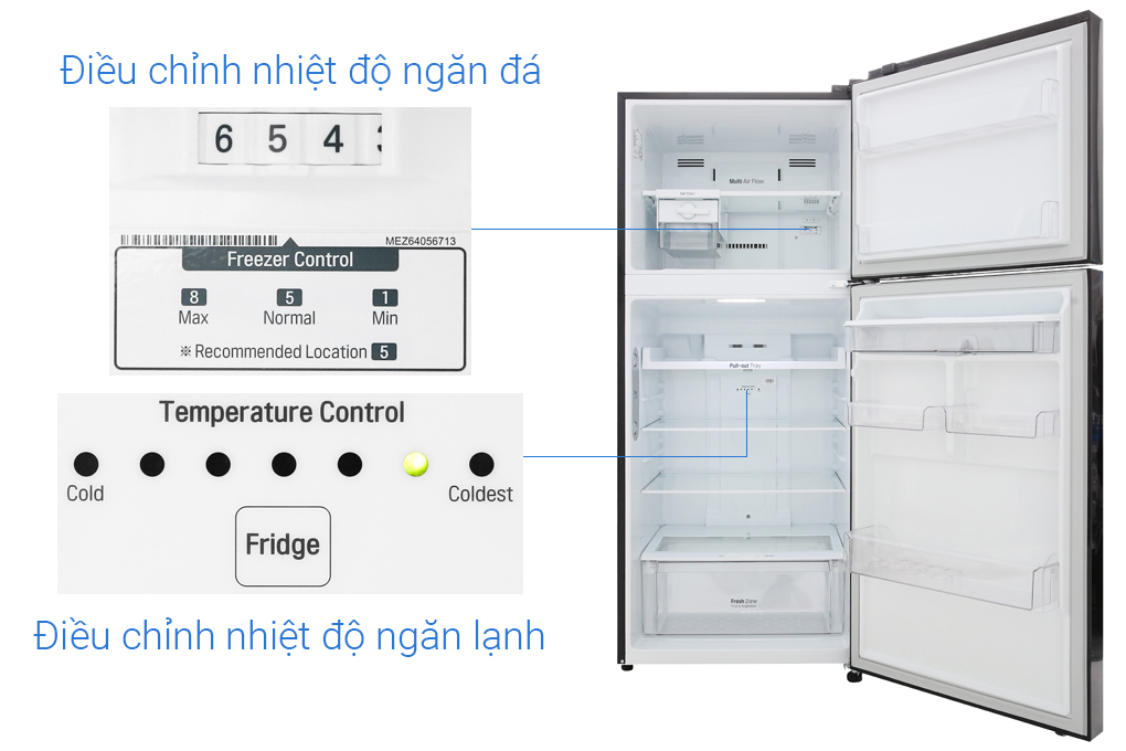 Chiếc tủ lạnh LG này có dung tích sử dụng trung bình là 393 lít, trong đó dung tích ngăn đá là 110 lít và dung tích ngăn lạnh là 283 lít, hoàn toàn phù hợp cho những hộ gia đình gồm 3 – 4 thành viên thoải mái sử dụng.