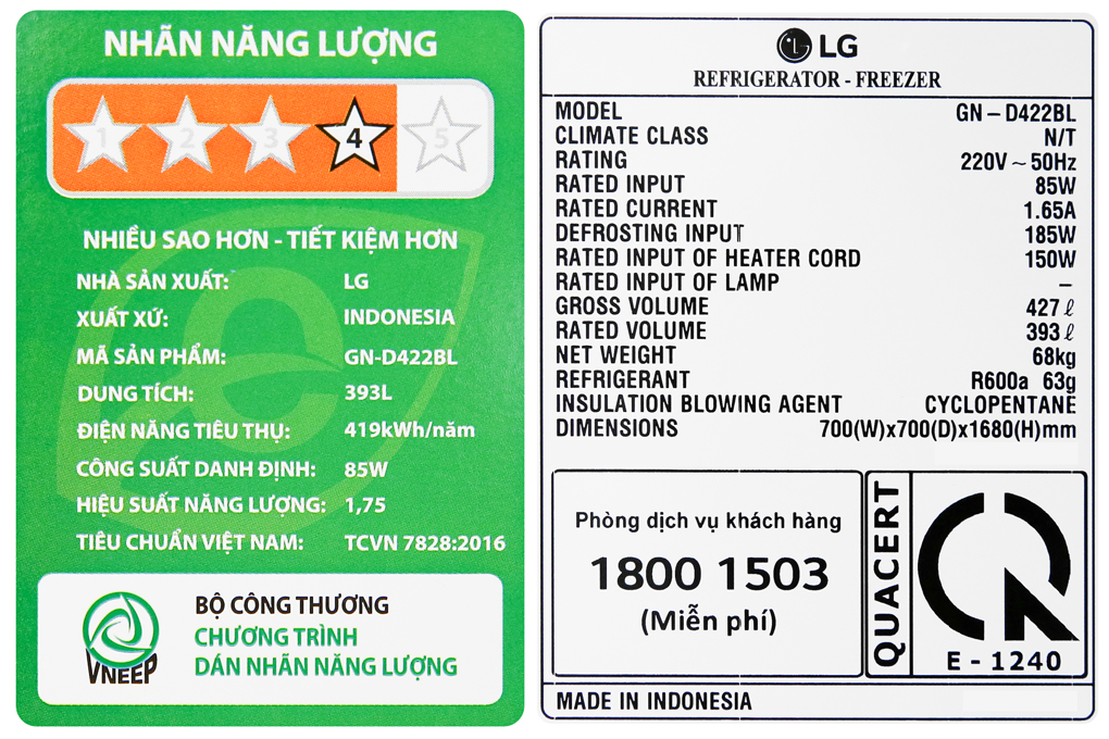 Có thể nói, chiếc tủ lạnh LG Inverter 393 lít GN-D422BL dường như đáp ứng đầy đủ về mặt sử dụng công nghệ và cũng sở hữu cho mình dung tích tương đối vừa phải, phù hợp cho những hộ gia đình không quá đông người.