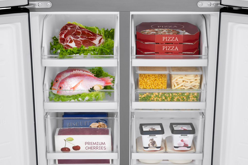 – Dung tích ngăn đá 210 lít, chia thành các khay bảo quản độc lập với mỗi khay cho 1 bên cánh tủ giúp bạn phân loại thực phẩm tốt hơn khi cần cấp đông, tăng chất lượng bảo quản, chống nhiễm khuẩn.