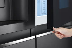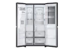– Tủ lạnh cỡ lớn Side by side với chất liệu cửa tủ là thép không gỉ màu đen nhám sang trọng, hiện đại. Phần tay cầm được thiết kế âm bên trong giúp lược bỏ các chi tiết thừa ngoài cửa tủ, đem đến sự gọn gàng, tối giản.