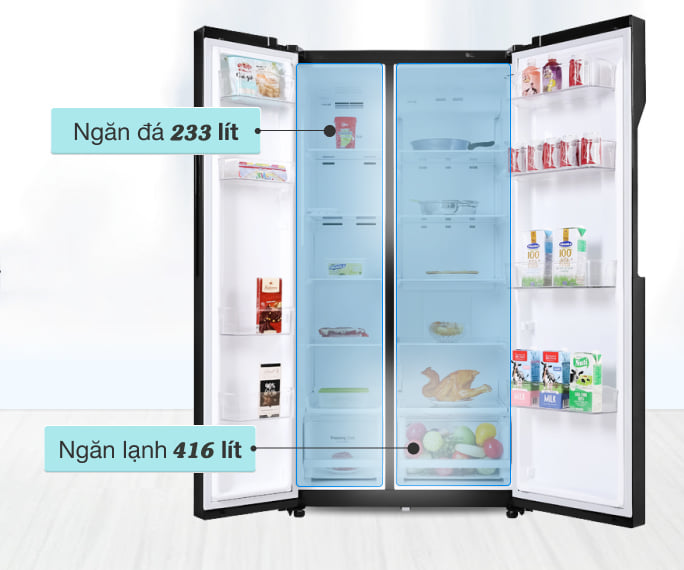 Chiếc tủ lạnh LG SBSGR-B257JDS có tổng dung tích 688 lít trong đó dung tích sử dụng 649 lít, là lựa chọn phù hợp cho những hộ gia đình đông thành viên, trên 5 người, hoặc những gia đình có thành viên ít hơn nhưng lại có nhu cầu bảo quản nhiều thực phẩm mỗi ngày.