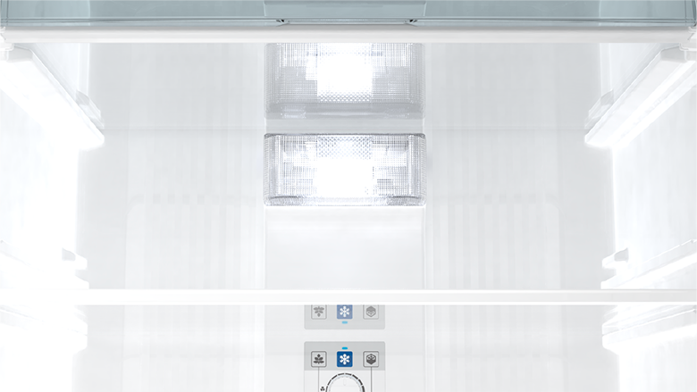 Bên trong tủ lạnh Sharp SJ-XP470AE-SL được trang bị đèn chiếu sáng khuếch tán 180° với công nghệ mô phỏng sinh học giúp bạn dễ dàng quan sát và lưu trữ thực phẩm.