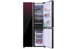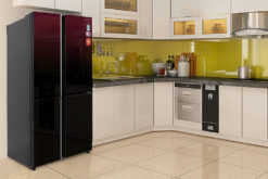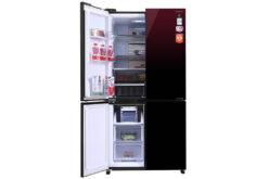 Tủ lạnh Sharp có thiết kế màu đỏ mới lạ và tinh tế, kết hợp với cửa tủ mặt gương, mang đến cho không gian nội thất gia đình bạn sự sang trọng và hiện đại.