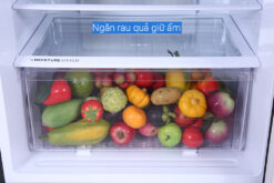 Ngăn giữ tươi thực phẩm trên tủ lạnh này được thiết kế khá rộng rãi. Đặc biệt là khả năng chuyển đổi linh hoạt từ ngăn giữ tươi thành các ngăn chứa tiện lợi khác. Tiện ích này cực kỳ hữu ích, phù hợp với nhiều mục đích sử dụng khác nhau của người dùng.
