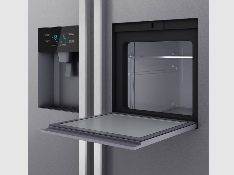 Một trong những tính năng nổi bật của tủ lạnh Teka RLF 74925 SS EU là quầy bar trên cửa. Hệ thống BarOnDoor cho phép bạn lấy đồ uống hoặc thực phẩm mà không cần mở cửa tủ lạnh, giúp tiết kiệm năng lượng và tạo sự tiện lợi khi sử dụng. Đây là một điểm cộng lớn cho những gia đình có thói quen sử dụng đồ uống lạnh hoặc các loại thực phẩm cần lấy ra thường xuyên.