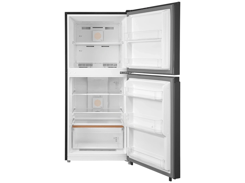 Tủ lạnh có thiết kế hiện đại với cửa tủ bằng thép sơn tĩnh điện, không chỉ mang lại vẻ đẹp sang trọng mà còn dễ dàng vệ sinh và chống bám vân tay. Khay ngăn làm bằng kính chịu lực giúp đựng được các thực phẩm nặng mà không lo bị nứt vỡ. Bên cạnh đó, ống dẫn gas bằng hợp kim Đồng và lá tản nhiệt bằng Nhôm giúp tăng cường hiệu quả làm lạnh và kéo dài tuổi thọ của tủ.