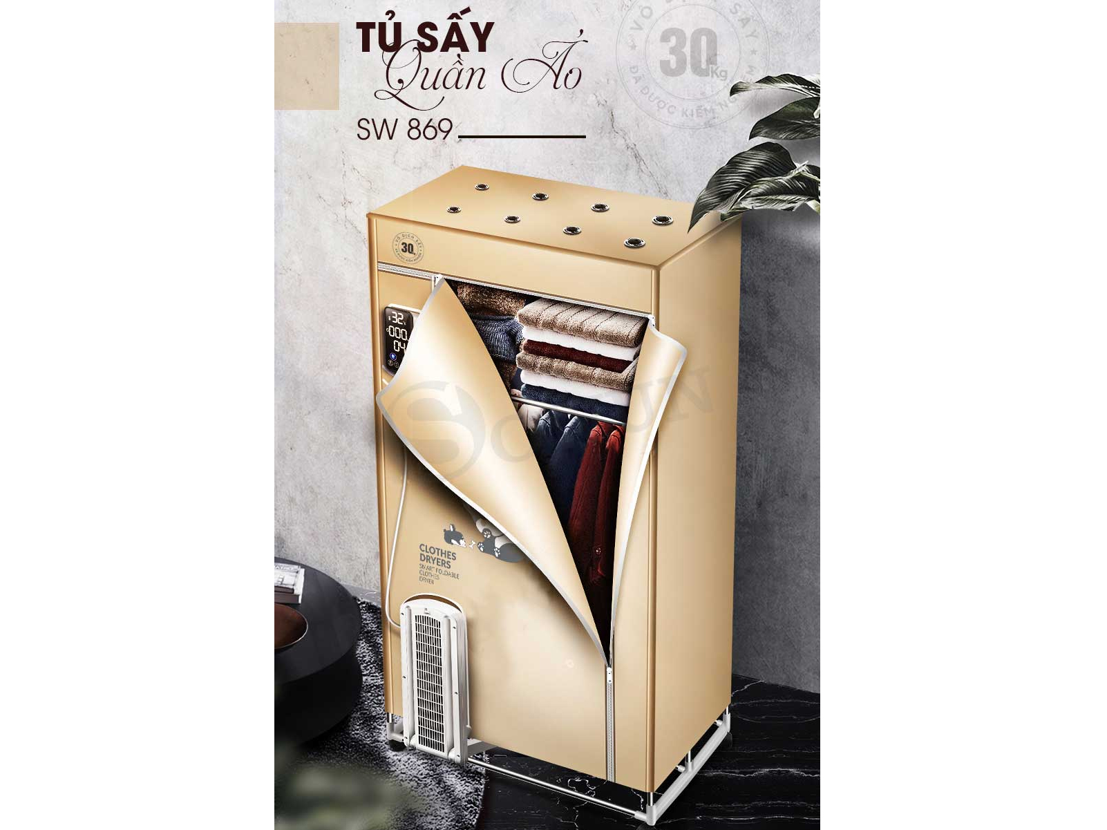 Với tính năng ion hóa giúp tiêu diệt hết các vi khuẩn bám trên quần áo. Không chỉ sấy quần áo, SW 869 còn có chức năng như một thiết bị làm ấm quần áo hiệu quả, làm ấm căn phòng hay trở thành một tủ chứa quần áo, giá phơi đồ tiện dụng.