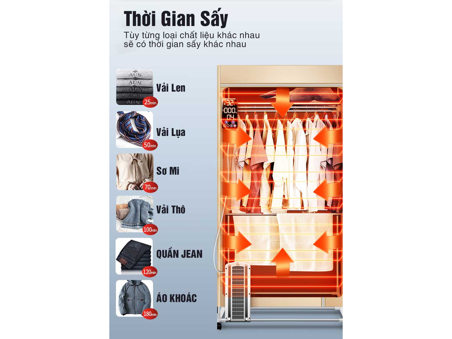 Bên cạnh kiểu dáng đẹp, sang trọng, chiếc tủ sấy quần áo Sowun SW 869S còn có công suất mạnh mẽ, nhiều tiện ích thông minh nhằm đem đến trải nghiệm sấy khô áo quần ấn tượng cho người dùng, vô cùng thích hợp cho những ngày trời mưa, nồm ẩm kéo dài.