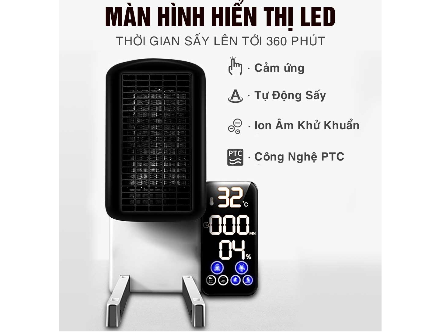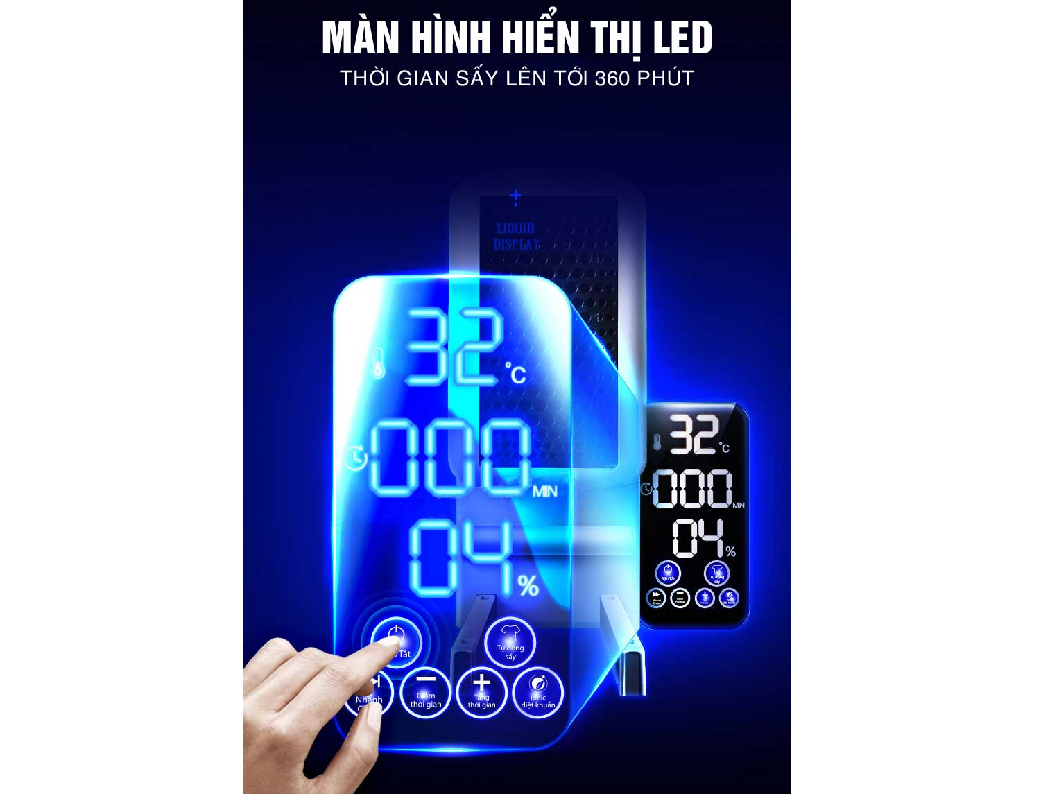 Tủ sấy quần áo có đa dạng chế độ sấy như tắt/bật, nhanh/chậm, ion hoá, sấy tự động, cài đặt thời gian… đồng thời người dùng còn có thể tùy chỉnh dễ dàng thông qua bảng điều khiển cảm ứng hiện đại, dễ dàng lựa chọn các chức năng chỉ với 1 chạm. Hơn nữa tủ sấy còn có màn hình LED để hiển thị thời gian sấy, độ ẩm và nhiệt độ giúp người dùng quan sát dễ dàng.