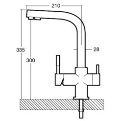 - Dáng vòi chữ L úp ngược với chiều cao lý tưởng cho mọi thao tác làm bếp, tích hợp 2 đường nước nóng – lạnh và 1 đường kết nối máy lọc nước tiện lợi. Đặc biệt hai tay vòi ngang giúp tối ưu không gian bàn bếp.