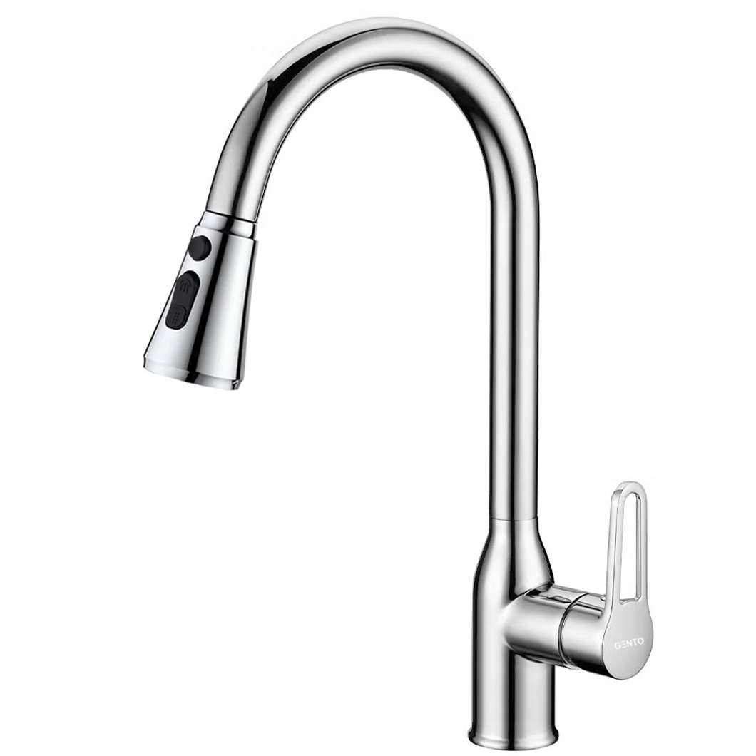 Vòi rửa nóng lạnh dây rút cao cấp Gento GT-201 đáp ứng mọi nhu cầu và mang lại trải nghiệm sử dụng vòi bếp đa năng và hiệu quả hơn bao giờ hết. Đối với những dòng vòi khác, đầu vòi chỉ có 01 đến 02 chế độ sử dụng, nhưng với dòng vòi rửa bát Gento GT-201 có đến 03 chế độ sử dụng giúp tăng tính tiện nghi.