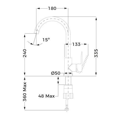 Với chiều cao tổng thể 335mm, chiều cao bên trong là 240mm và độ sâu 180mm, vòi rửa bát Teka IN 915 có kích thước lý tưởng để lắp đặt trên các loại chậu rửa thông dụng. Trọng lượng chỉ 1kg giúp vòi ổn định và dễ dàng lắp đặt, sử dụng lâu dài mà không gặp phải vấn đề về độ vững chắc.